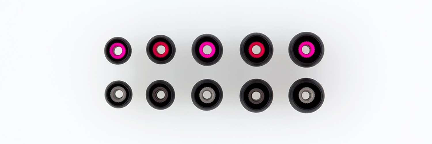 Questi tips sono disponibili in diverse misure e utilizzano una struttura interna studiata per mantenere una corretta pressione all’interno del condotto uditivo.